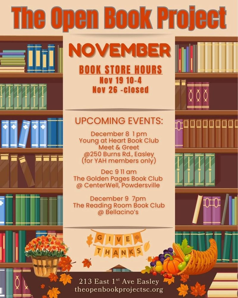 RSVP: text 864-915-6907 or email theopenbookprojectsc@gmail.com