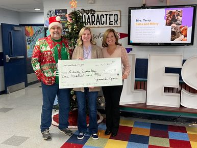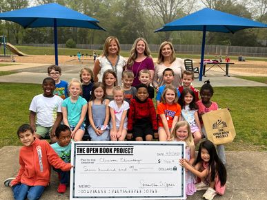 Pictured from left to right: Principal -Dr. Lowell Haynes, 4th grade teacher - Elizabeth Gunnels, and President of The Open Book Project - Samantha Jones