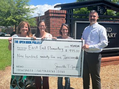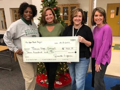 Pictured from left to right: Lynn Boiter - Vice President and Samantha Jones - President (The Open Book Project), Angela Spearman - Reading Coach and Heather Touchberry - Principal (McKissick)