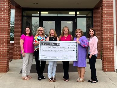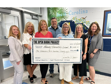 Pictured from left to right include: Lorie Steveson, Lynn Boiter, and Samantha Jones (Executive Board Members of The Open Book Project), Dr. Lowell Haynes - Principal, Mary Anne Fabian - School Counselor, Jenifer Griffis - Reading Coach, and Jamie Few - Assistant Principal (Liberty Elementary School Staff)