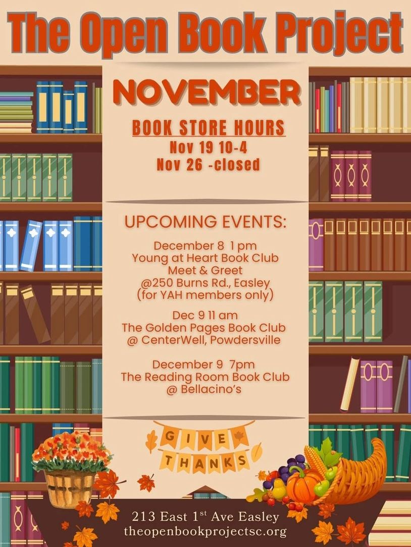 RSVP: text 864-915-6907 or email theopenbookprojectsc@gmail.com